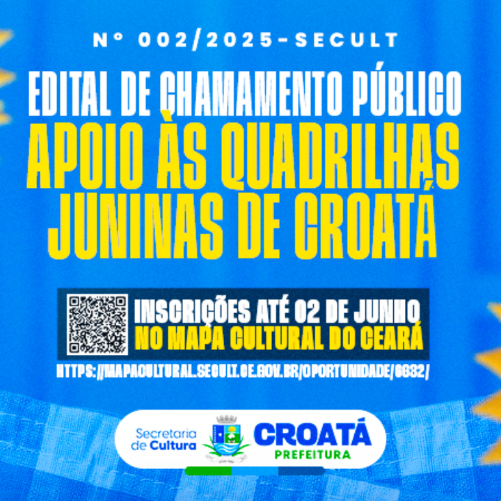 EDITAL DE CHAMAMENTO PÚBLICO Nº 002/2025-SECULT - APOIO ÀS QUADRILHAS JUNINAS DE CROATÁ/CE